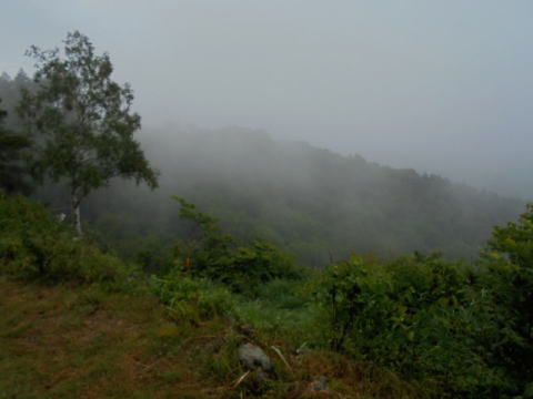 あいにくの雨で遠景は何も見えない。